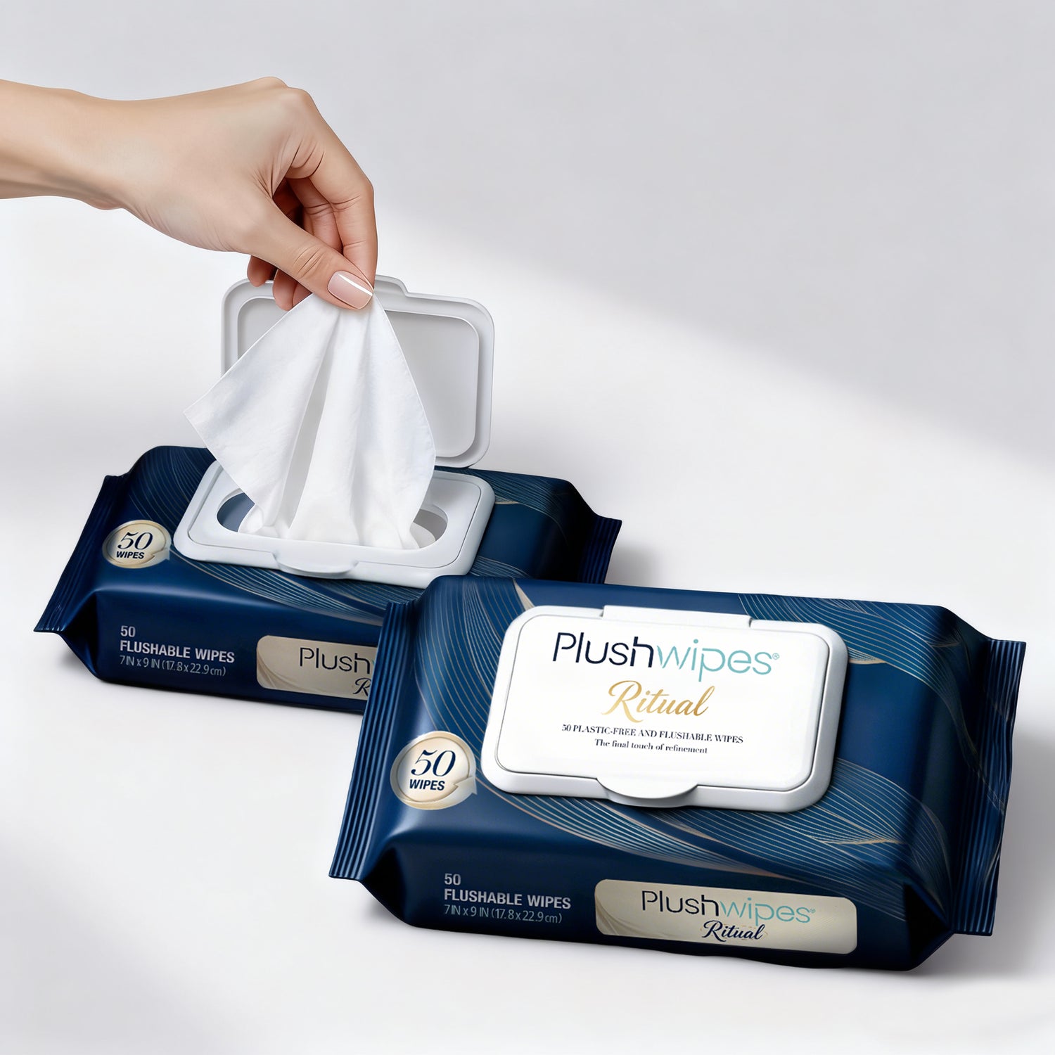 Plushwipes Ritual 50ct Flushable Wipes 4-Pack, 200 Wipes, Larger, Luxurious, Witch Hazel Infused